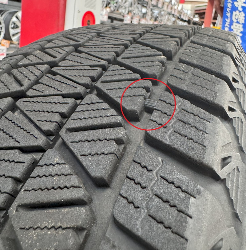 ※プラットホーム(スタッドレスタイヤとしての使用限度・写真赤丸内)まで約4.0mm程度