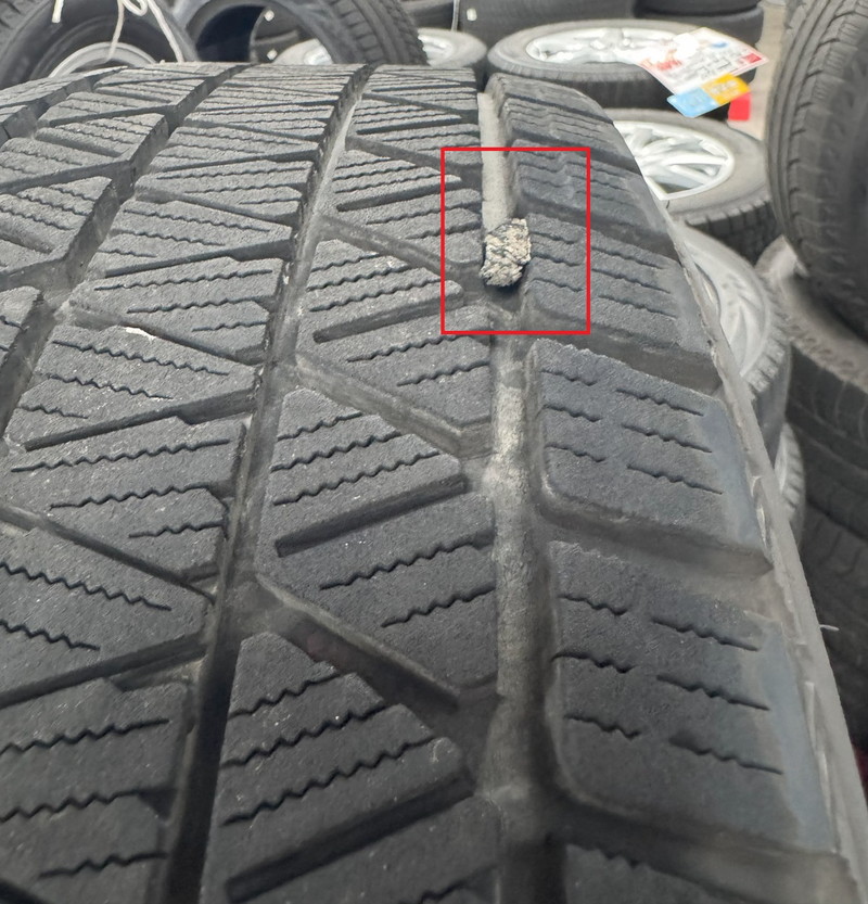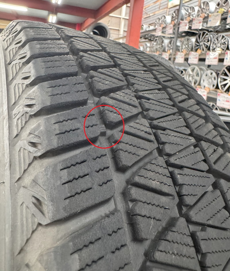 ※プラットホーム(スタッドレスタイヤとしての使用限度・写真赤丸内)まで約4.0mm程度