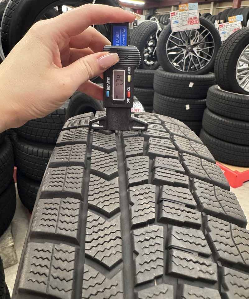 ※プラットホーム(スタッドレスタイヤとしての使用限度・写真赤丸内)まで約3.5mm程度