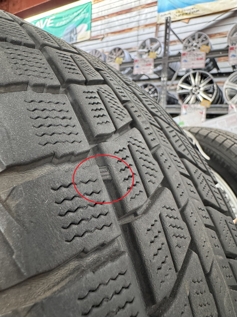 ※プラットホーム(スタッドレスタイヤとしての使用限度・写真赤丸内)まで約2.0mm程度