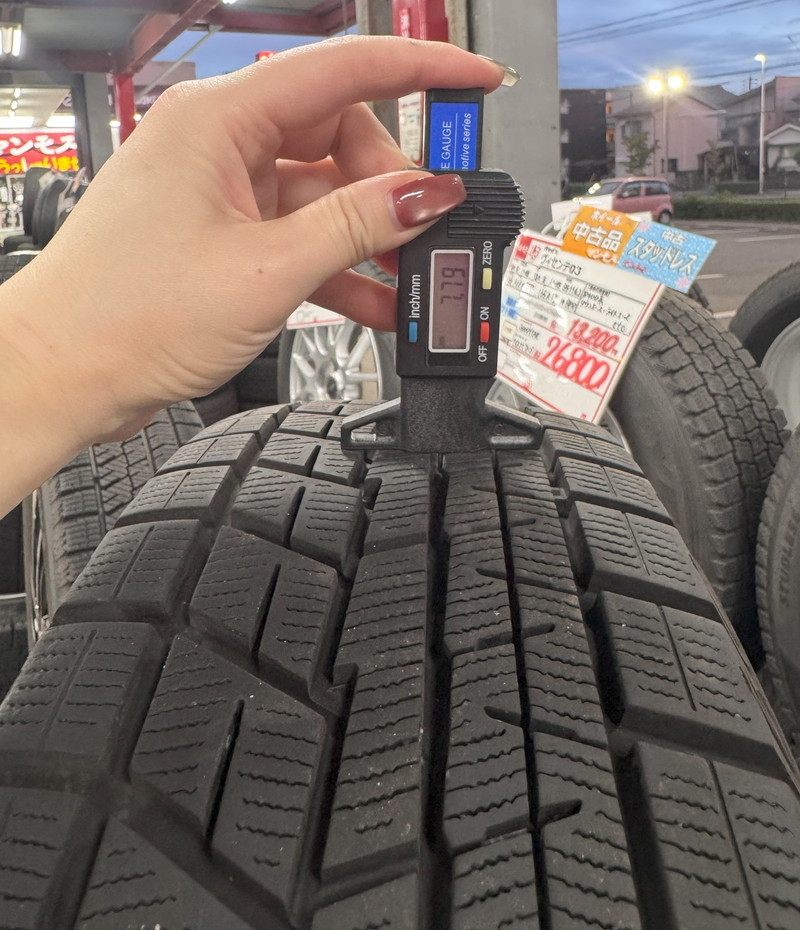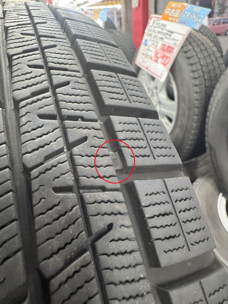 ※プラットホーム(スタッドレスタイヤとしての使用限度・写真赤丸内)まで約3.5mm程度