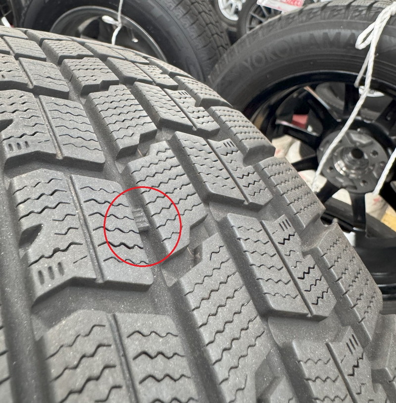 ※プラットホーム(スタッドレスタイヤとしての使用限度・写真赤丸内)まで約3.5mm程度