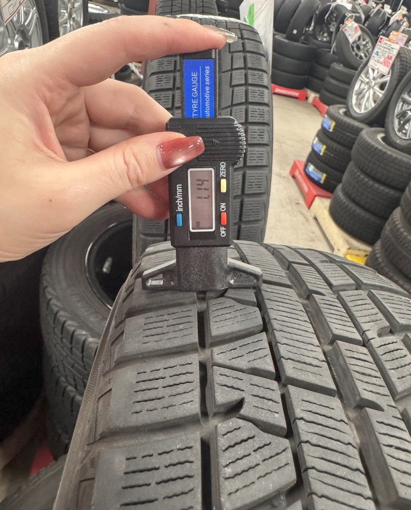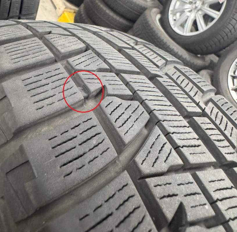 ※プラットホーム(スタッドレスタイヤとしての使用限度・写真赤丸内)まで約1.0mm程度