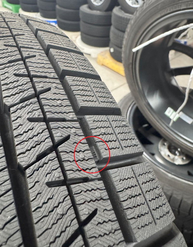 ※プラットホーム(スタッドレスタイヤとしての使用限度・写真赤丸内)まで約4.0mm程度