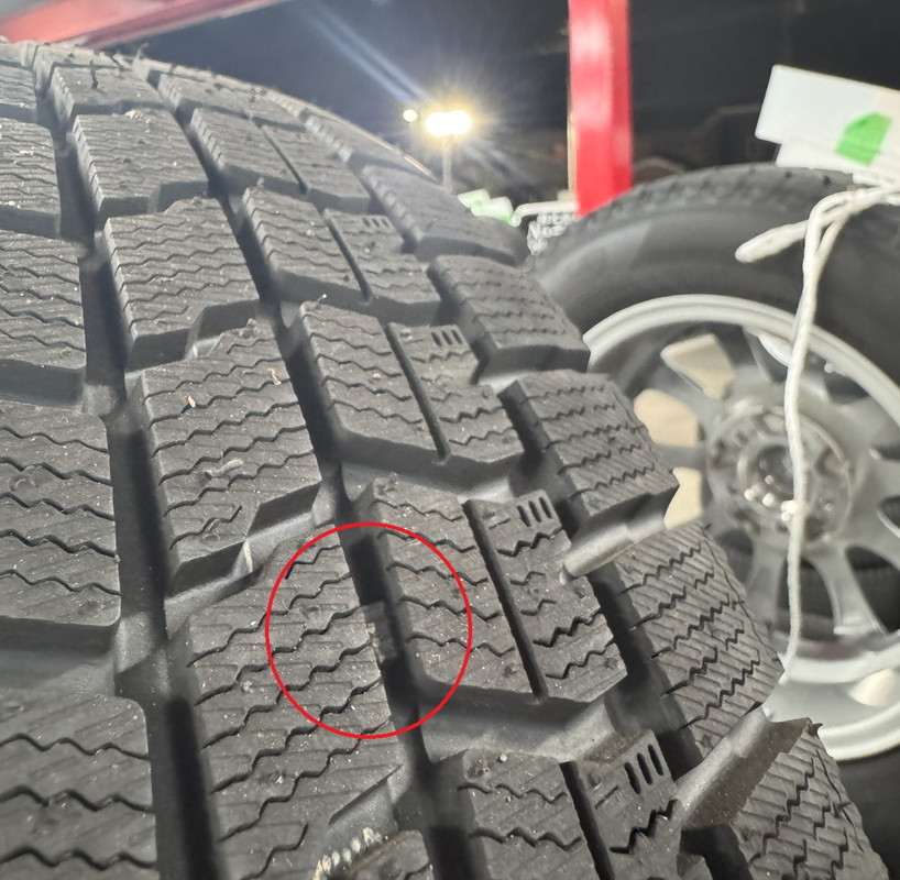 ※プラットホーム(スタッドレスタイヤとしての使用限度・写真赤丸内)まで約5.0mm程度