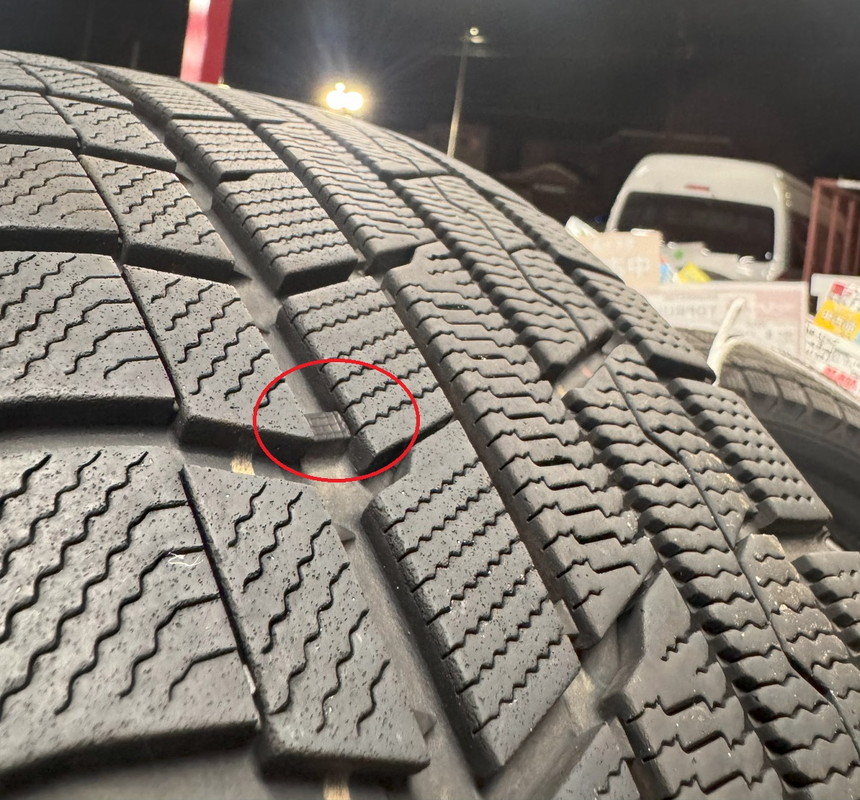 ※プラットホーム(スタッドレスタイヤとしての使用限度・写真赤丸内)まで約3.5mm程度