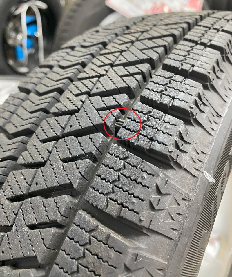 ※プラットホーム(スタッドレスタイヤとしての使用限度・写真赤丸内)まで約3.5mm程度