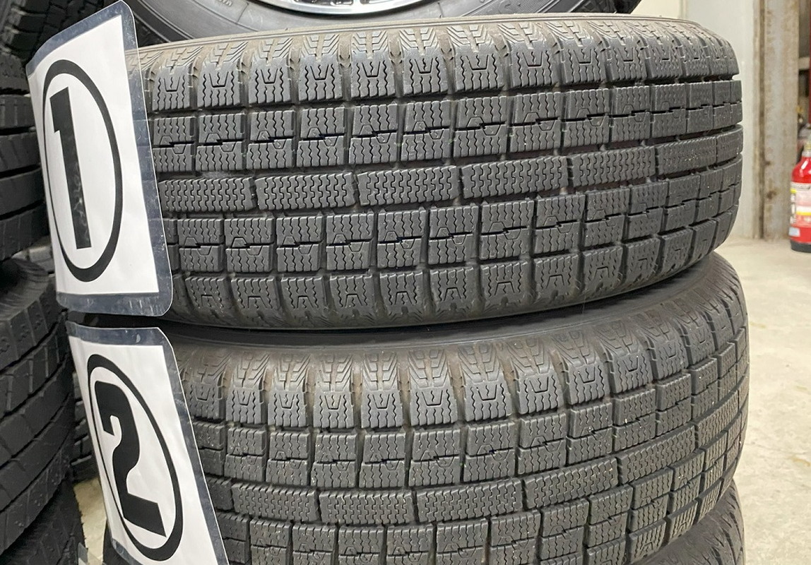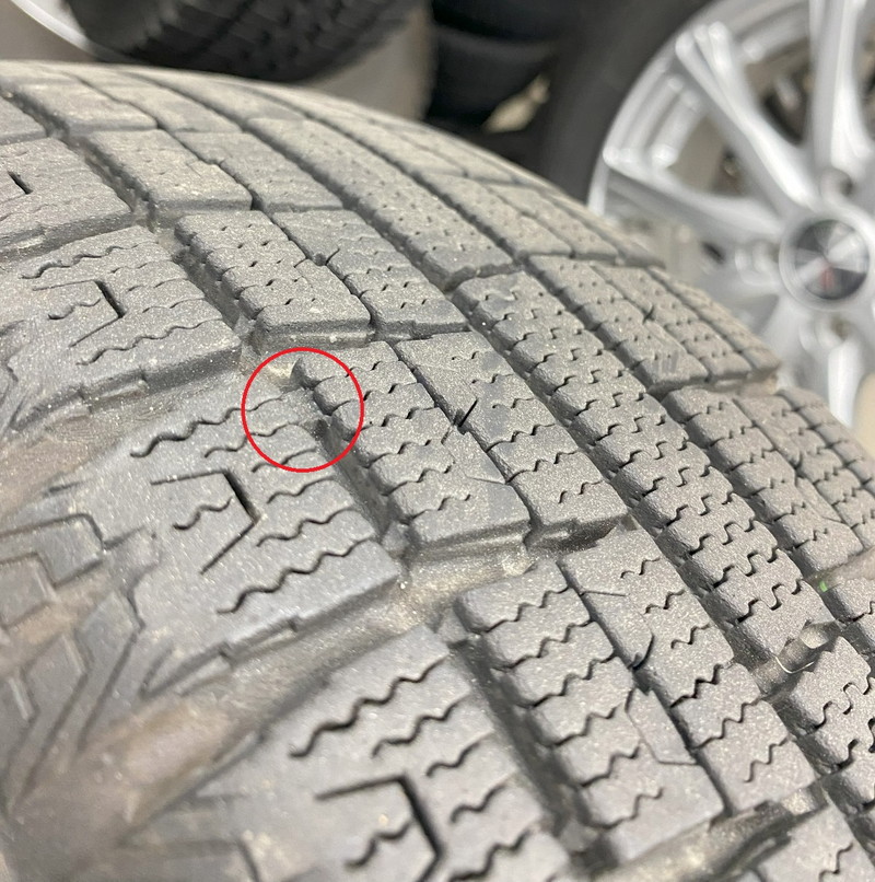 ※プラットホーム(スタッドレスタイヤとしての使用限度・写真赤丸内)まで約2.5mm程度