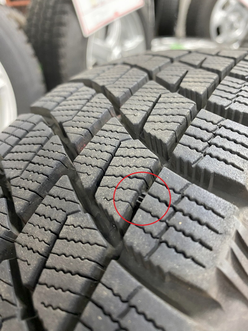 ※プラットホーム(スタッドレスタイヤとしての使用限度・写真赤丸内)まで約3.0mm程度