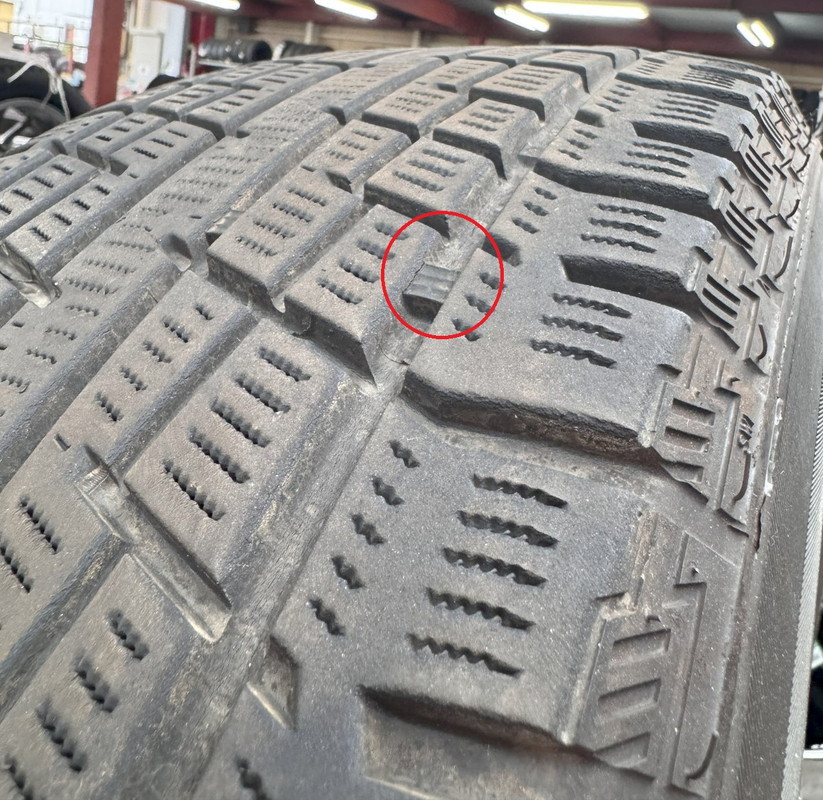 ※プラットホーム(スタッドレスタイヤとしての使用限度・写真赤丸内)まで約2.0mm程度