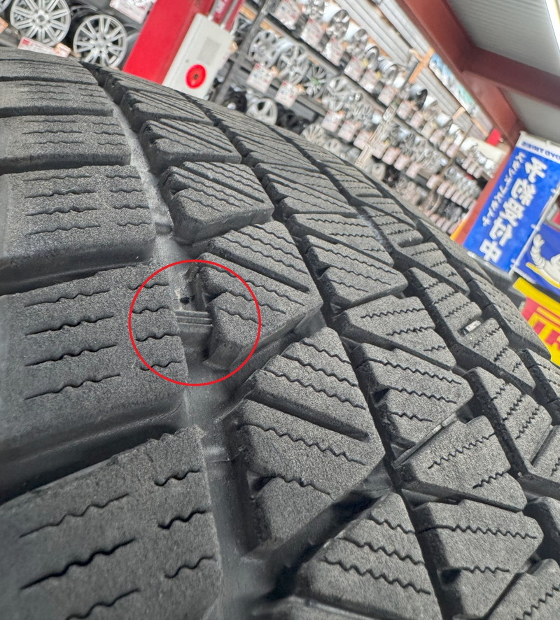 ※プラットホーム(スタッドレスタイヤとしての使用限度・写真赤丸内)まで約2.0mm程度