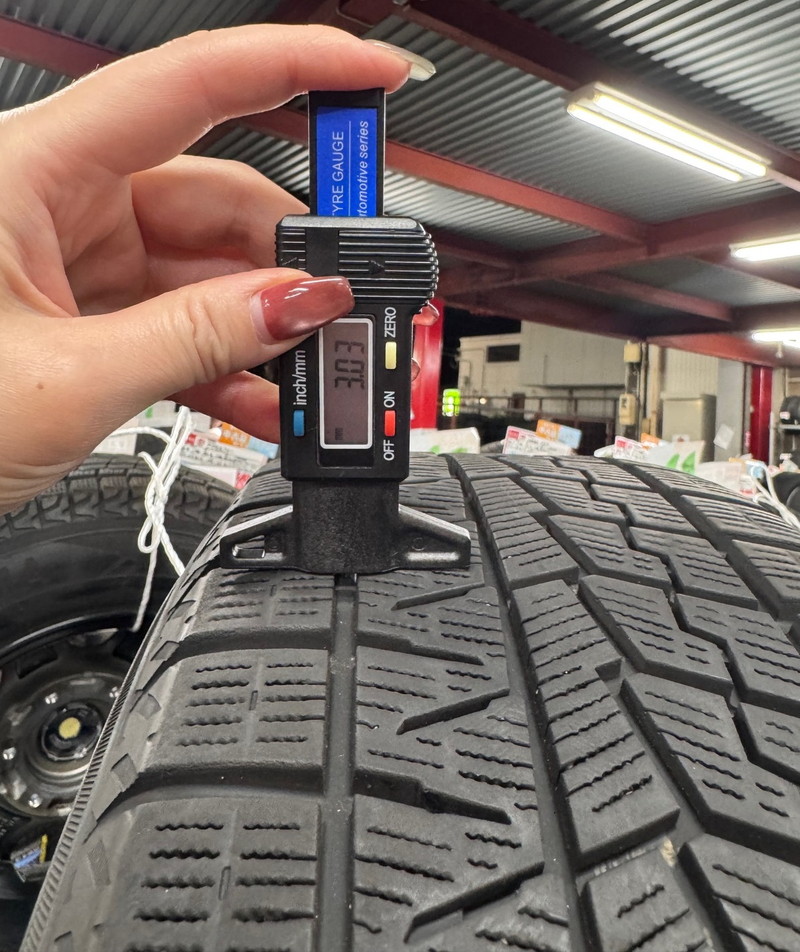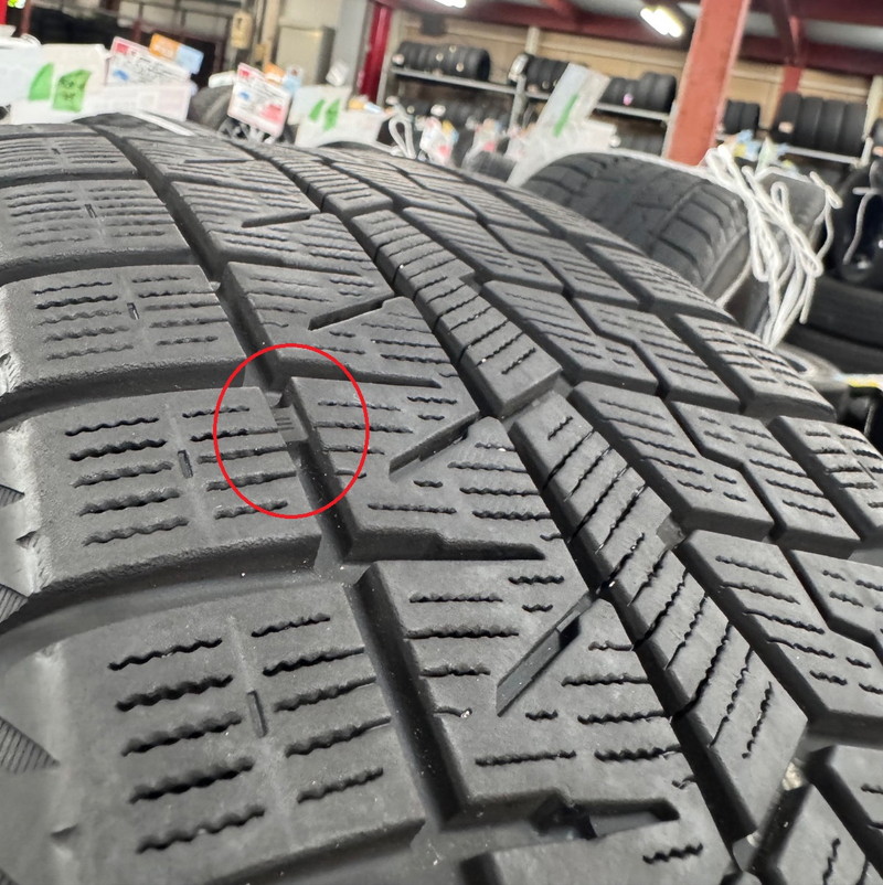 ※プラットホーム(スタッドレスタイヤとしての使用限度・写真赤丸内)まで約3.0mm程度