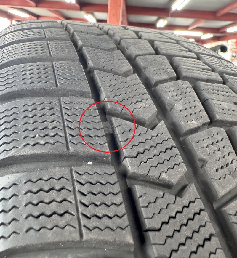 ※プラットホーム(スタッドレスタイヤとしての使用限度・写真赤丸内)まで約3.0mm程度