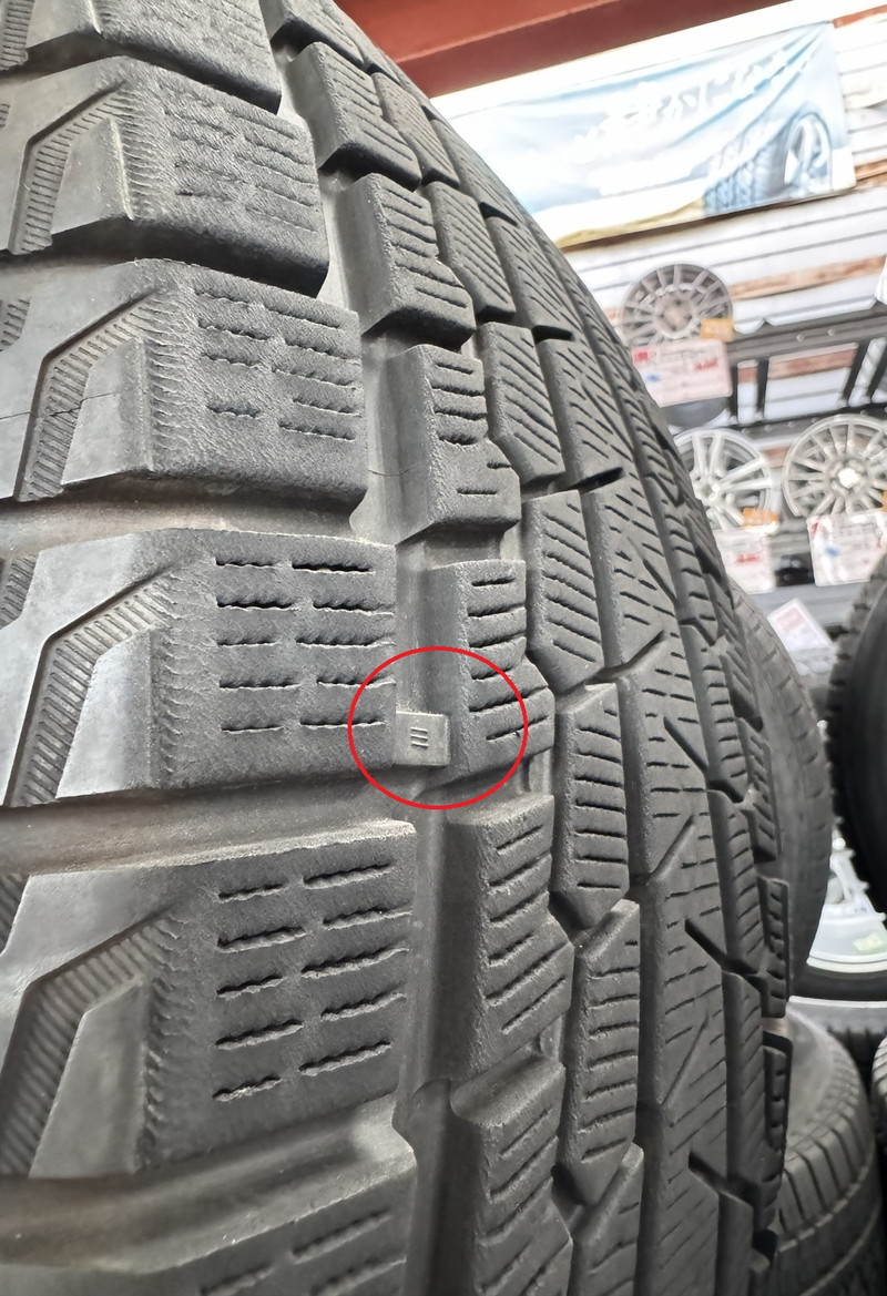※プラットホーム(スタッドレスタイヤとしての使用限度・写真赤丸内)まで約3.0mm程度